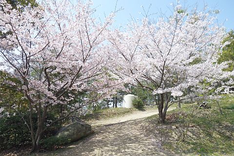 小松ヲ隔テ瀬戸内海ヲ望ミ風景絶佳ナリ。