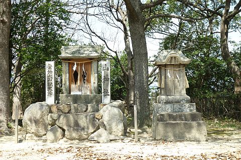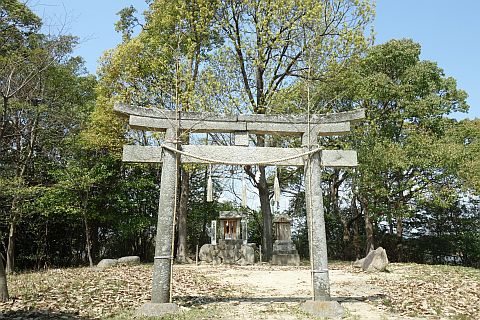 「乙島字 山の神に鎮座せしも開拓のため 昭和四十七年八月戸島山上に遷宮」