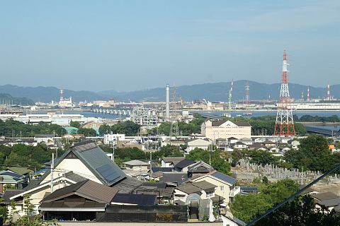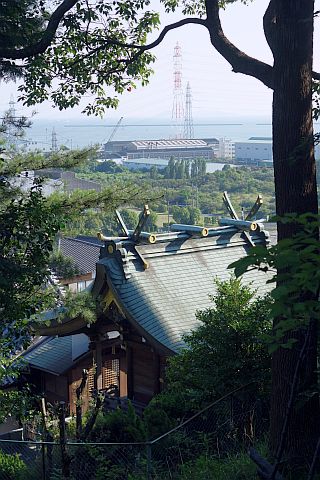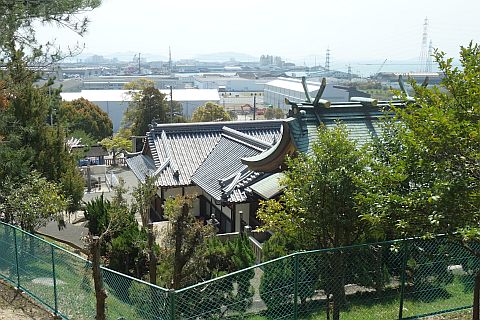 本殿後方より南(太平新開 33ha 昭和18年・水島工業地帯E地区)を望む