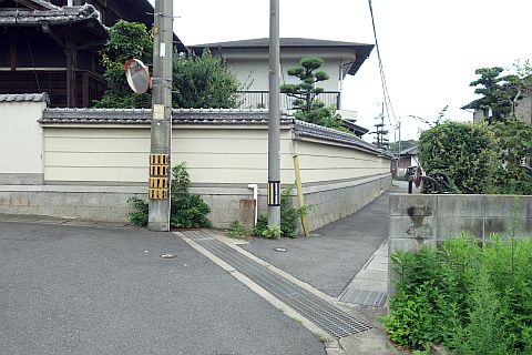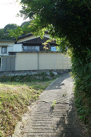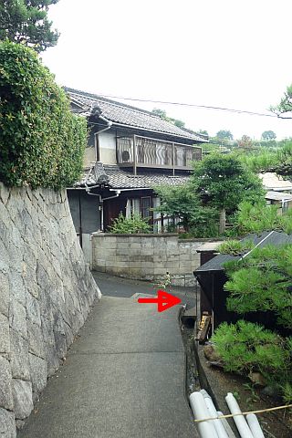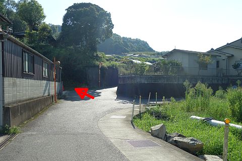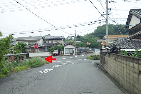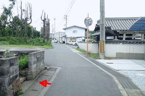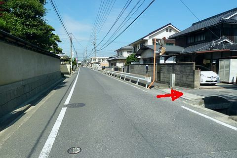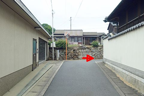 南へ15m進み、丁字路を右折して細道を南西へ15m上る