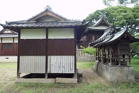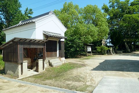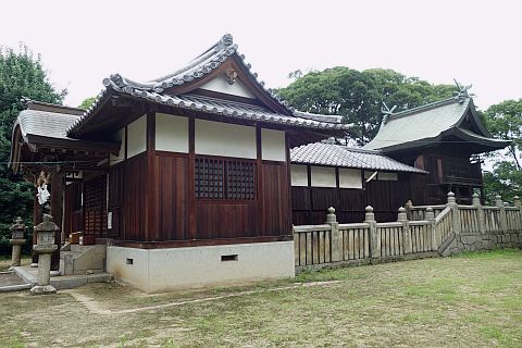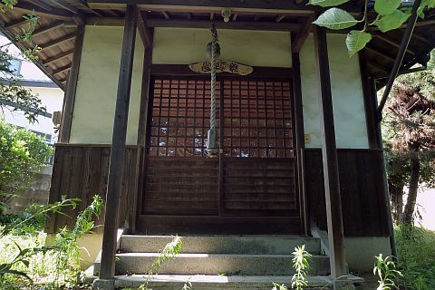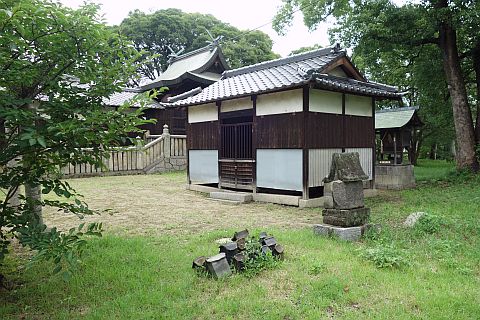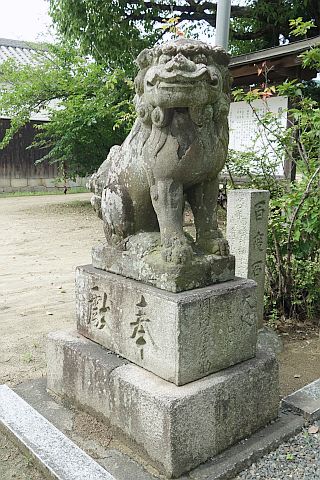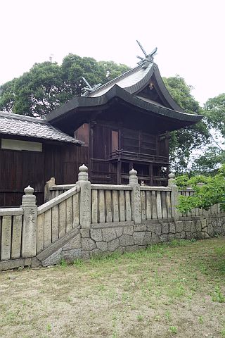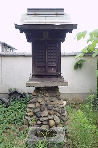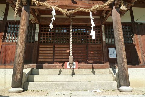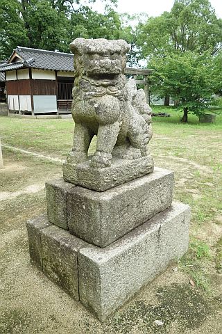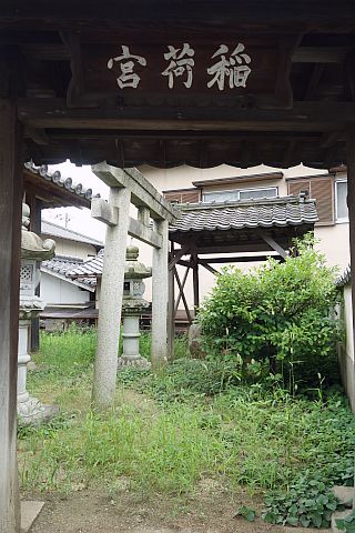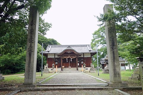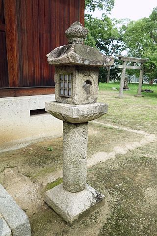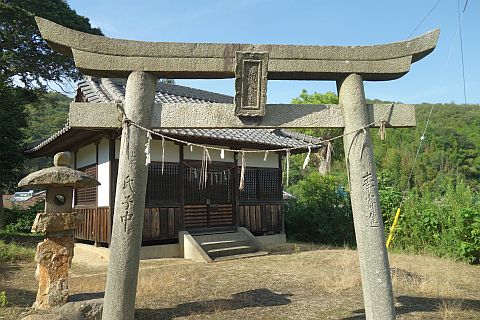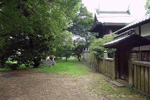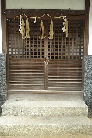 県道47号線の横断歩道を渡り、八幡道(やはたみち)を東へ180m進み、参道を上る