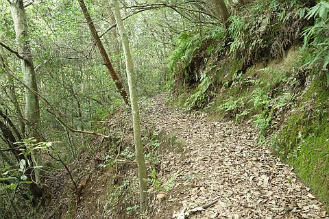 車道を東へ110m進み、四叉路から東北東(左)へ190m進む