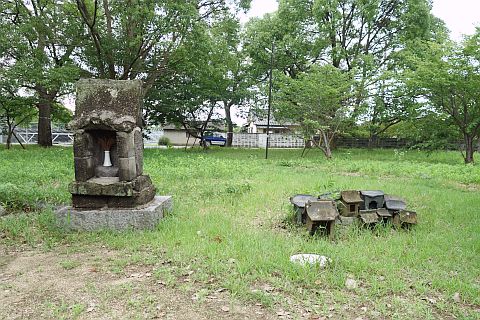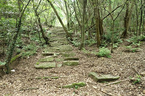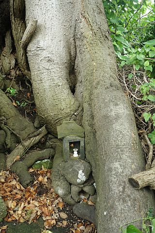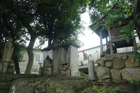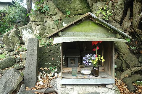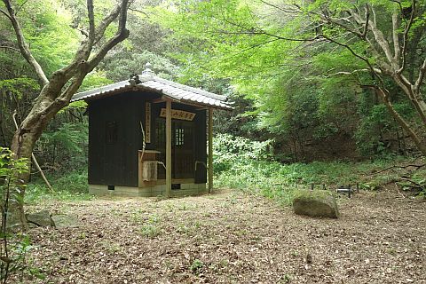 徒歩の場合は石鳥居の前から細道を西南西へ90m上って丁字路を左折し、