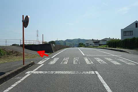 県道47号線の交差点に戻り、左折して県道を南西へ225m進む