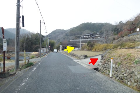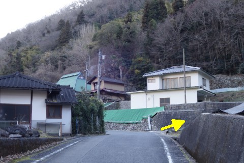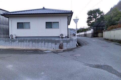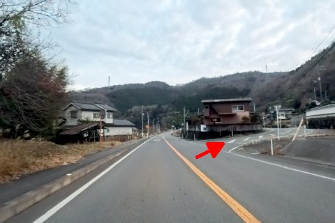 左カーブの手前にあるY字路を左折し、北へ10m程上る