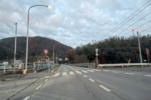 コメリと井笠オートがある丁字路を左折して東へ100m上り、橋を渡る