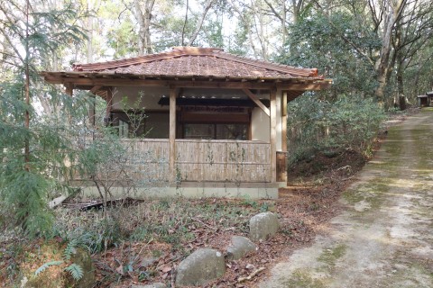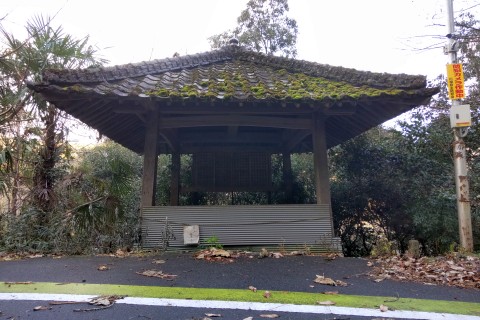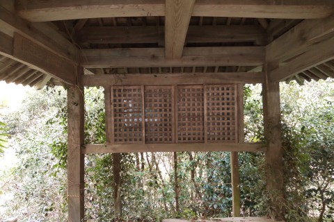 トタン葺き屋根、四方吹き放しの四ツ堂。