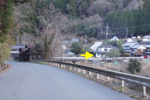 千峯坂尻から県道9号線を南へ385m下り、丁字路を右折して山戸橋を西へ渡る