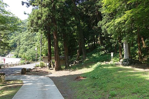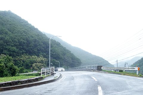 橋を渡って南へ155m進み、丁字路を左折して国道313号線を南へ800m、南東へ410m進む