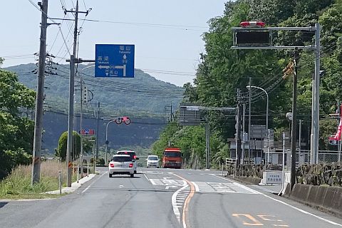 井原市芳井町下鴫の県道9号線沿い、落石注意の看板の横