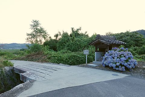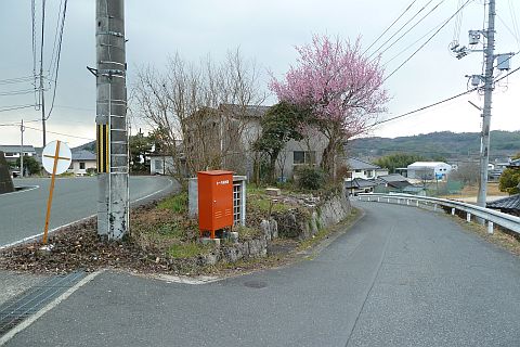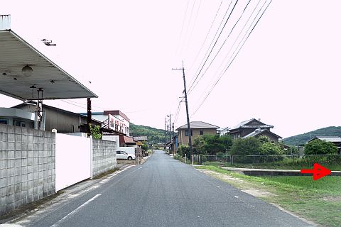 元 給油所の前にある丁字路を右折して北西へ100m下り、