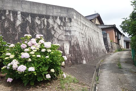 江良往来(笠岡往来)の東(向かって左)が堺辺、右(西)が日近
