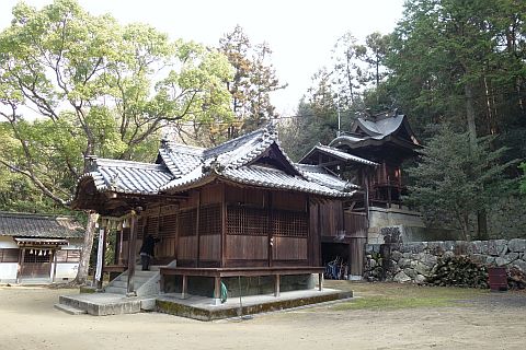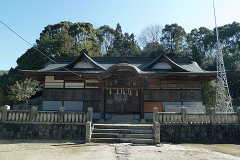 境内社は火産霊神社、荒神社。旧社格は村社。