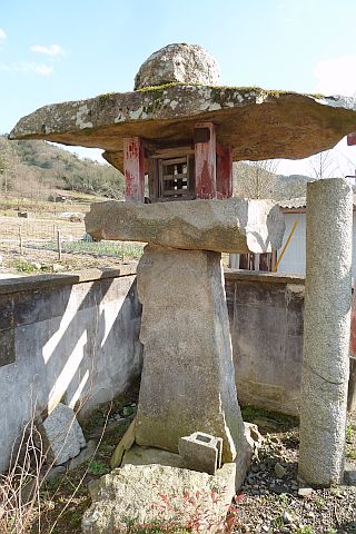 自然石の燈籠と自然石地神が鎮座