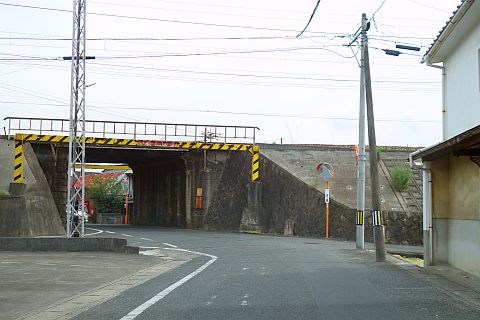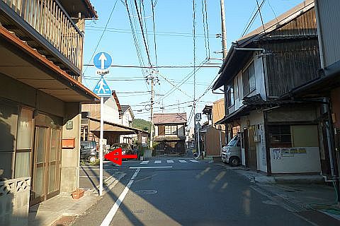 県道60号線の跨線橋の下にあるY字路から南南東へ15m進んで左折