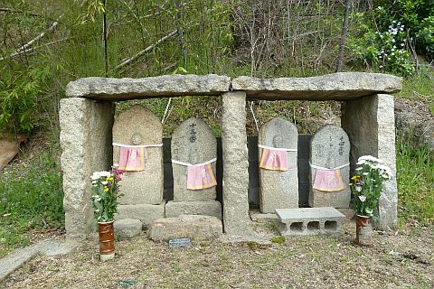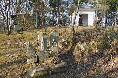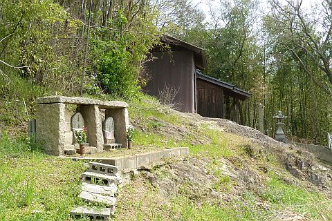 山頂と威徳寺を結ぶ道(通行困難)を少し下った所にある
