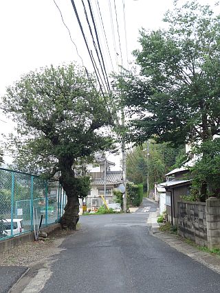 細道を東へ65m進んで丁字路を右折し、南へ44m進む。