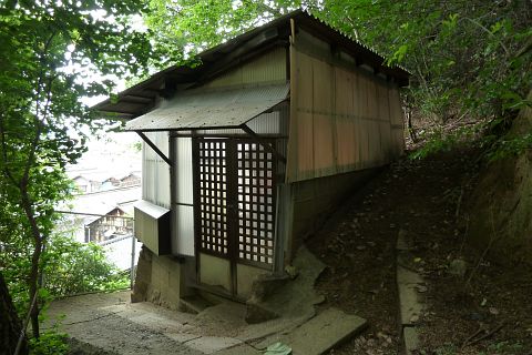 鴨方往来を東へ230m進んで左折し、参道を北へ45m、西へ50m上る