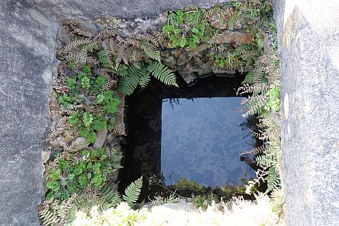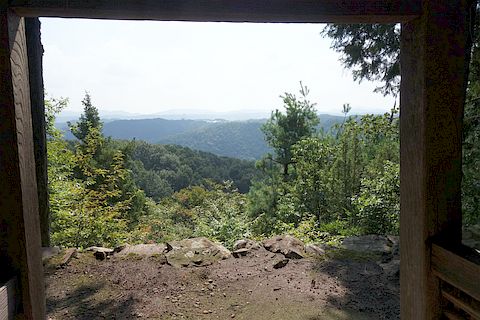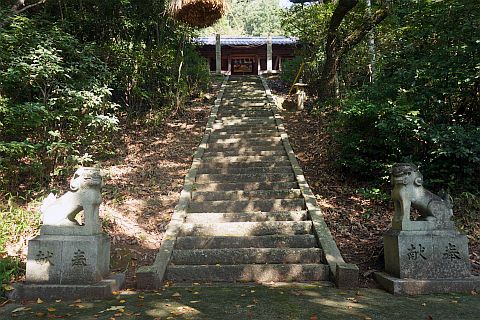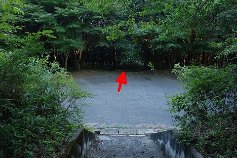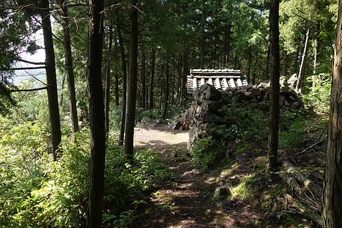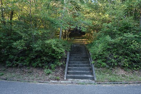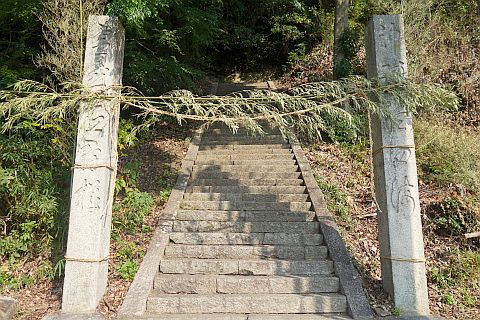 石段を東へ5m上り、東へ20m進んで左折し、北西へ15m進む