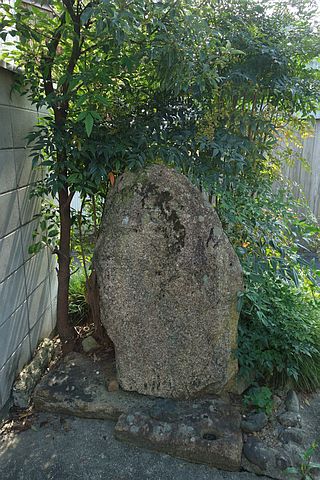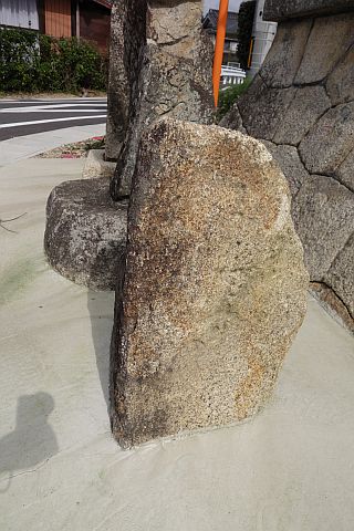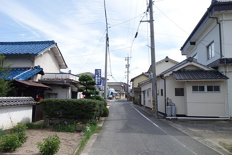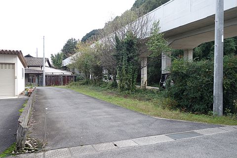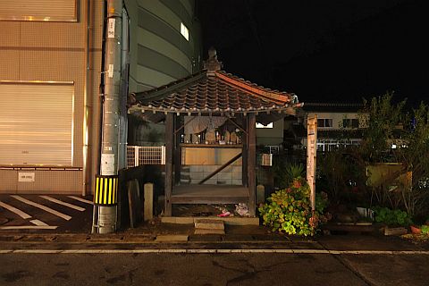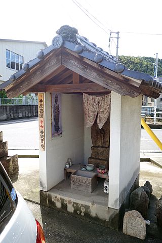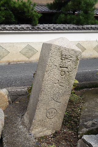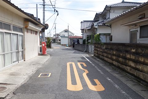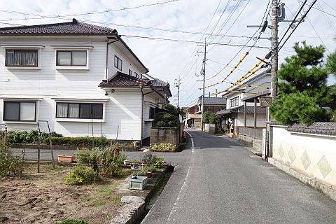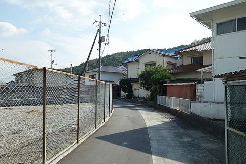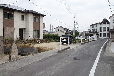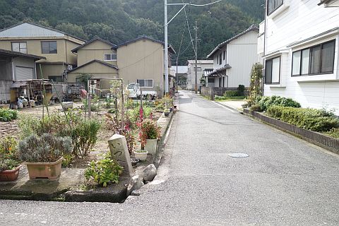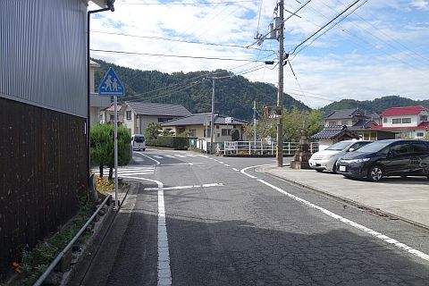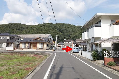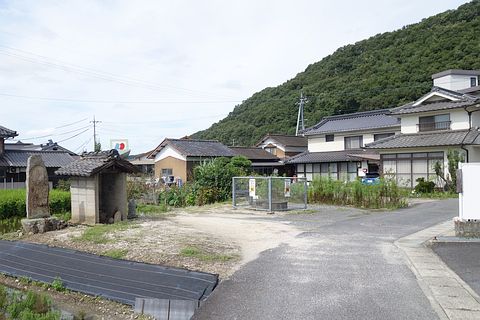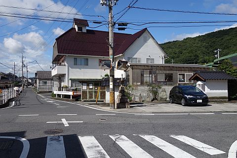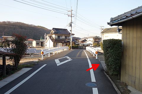 旧山陽道の十字路(たこ焼き屋の横)からさらに南へ18m進み、県道102号線を横断して左折。