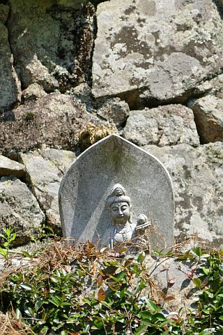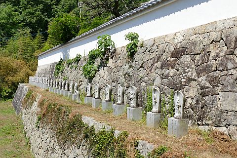 石積みの中段に坂東三十三ヶ所観音霊場の本尊石仏群が並んでいる。