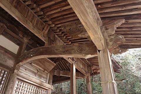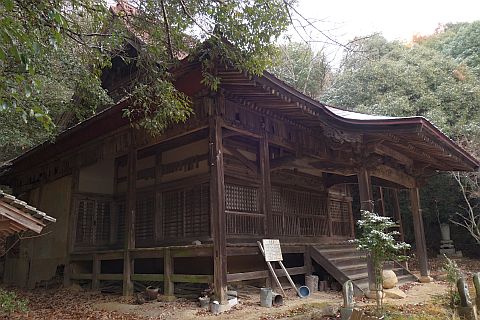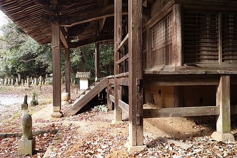 右折して南東へ約500m下ると起木薬師堂の脇に出る