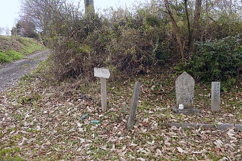 牛供養碑兼道しるべ(地蔵菩薩坐像 + 牛?)