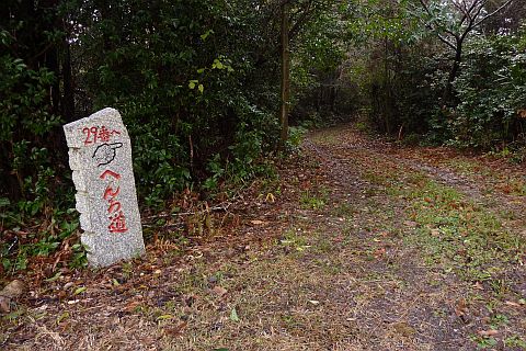 ろくどう前の六叉路を右折して車道を北へ495m下り、金剛福寺の標柱がある丁字路を左折。