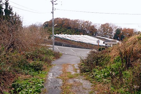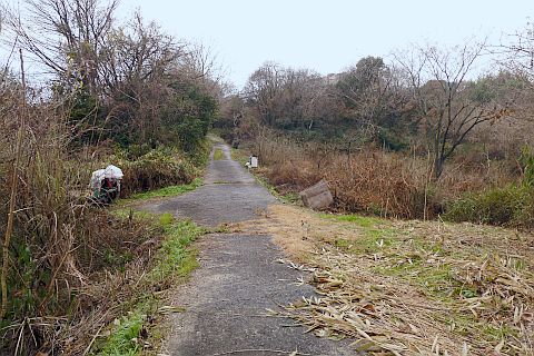岡山西ゴルフ倶楽部内を通る市道(大谷地区→上長迫地区)の脇