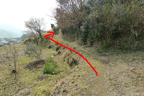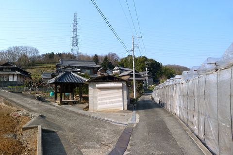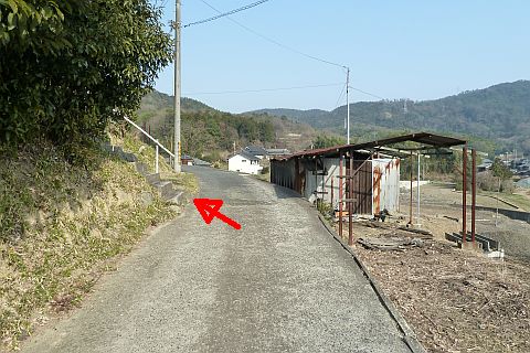 広域農道(県道60号線)に出たら左折して東へ186m上り、Y字路を左へ190m上る