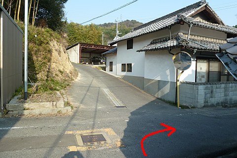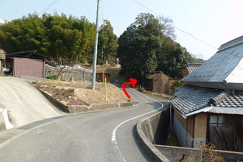 荒神社の西108mの所にある丁字路まで戻り、左折して南東へ162m下る