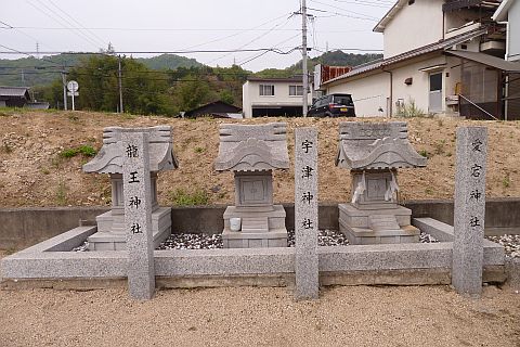金山下池の西230m、六柱神社の南南西210mの所にある龍王神社・宇津神社・愛宕神社