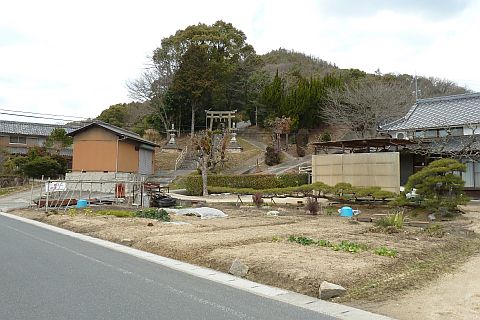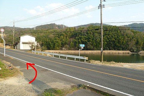 山陽自動車道の手前にある池の横で左折し、参道を南西へ128m上る