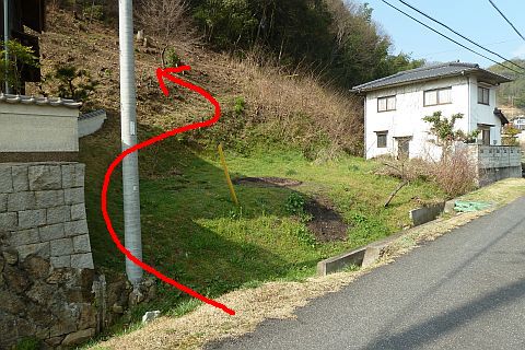 坂道の途中で右折し、西へ5m上る