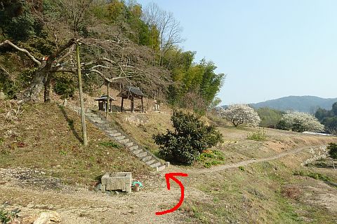 園井の竿地区の天野池(天王池)の西。ぶどう畑の横。
