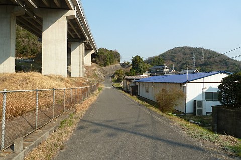 山陽自動車道の高架下まで戻り、左折して側道を東南東へ100m進む。