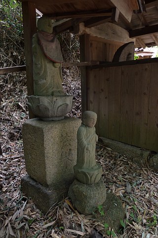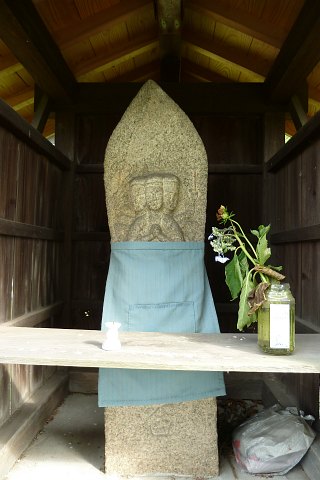石仏は延命地蔵菩薩坐像。種子は刻まれていない。宝篋印塔型。