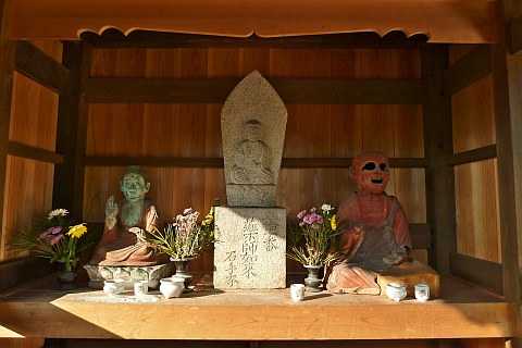 本尊の両脇にあるのは伝教大師(最澄)坐像と天台大師(