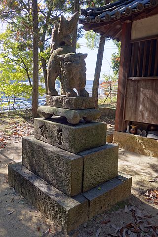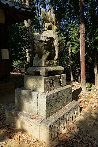 屋根を銅板葺に改め、明治四年(1871年)神武天皇の遙拝所を設けた。当社の石製唐獅子に
