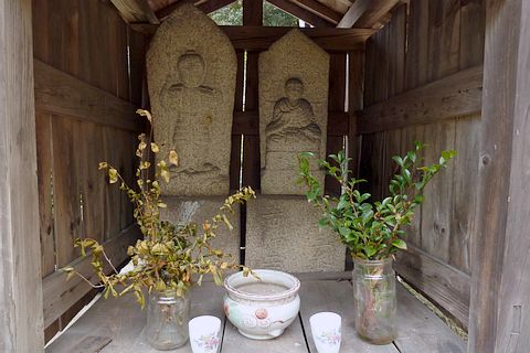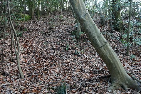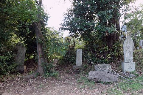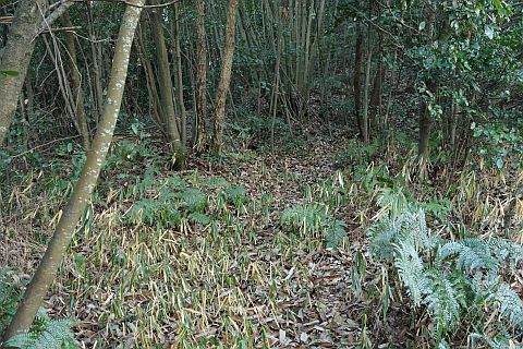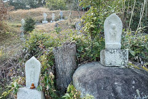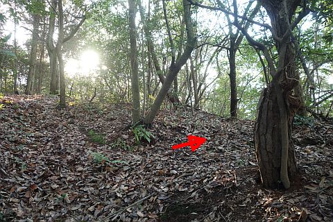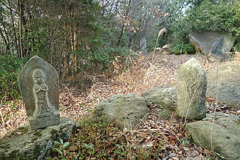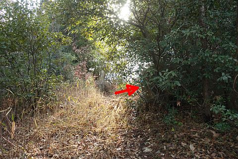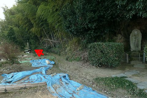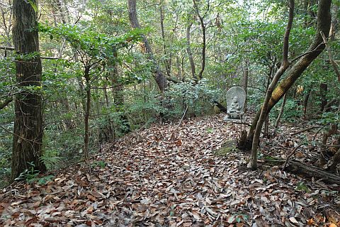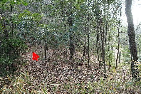 阿弥陀堂の前に戻り、墓地への参道を南南西へ40m上り、参道を外れて南へ10m上る