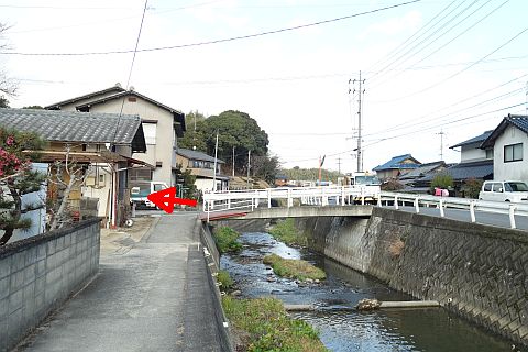 王子権現社前に戻り、鴨方川沿いの道を南へ180m進む