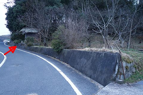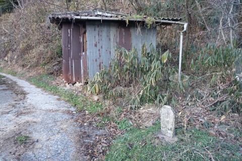 万人講供養兼道しるべの前から南西へ110m上り、75m進んだ所