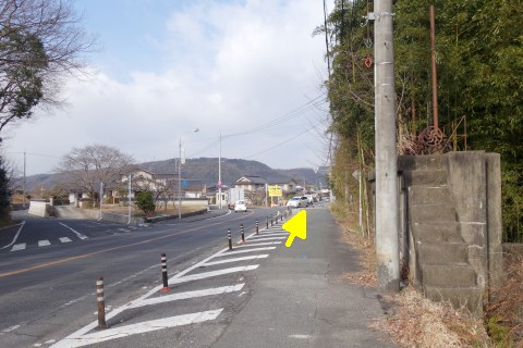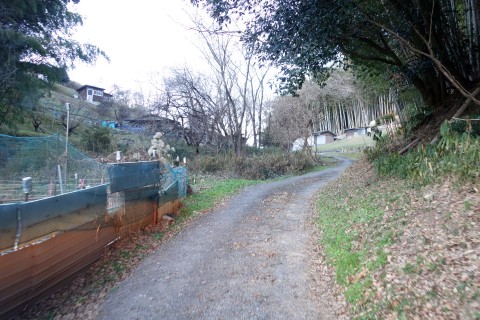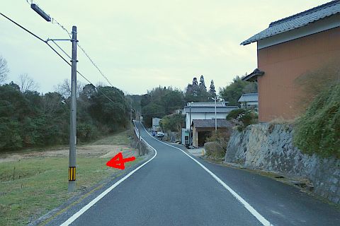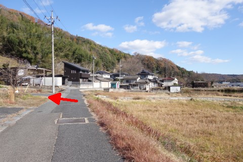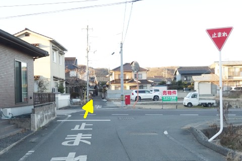 県道290号線を横断して東北東へ90m、北東へ105m、北へ80m、北北東へ155m進む