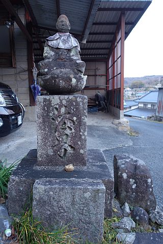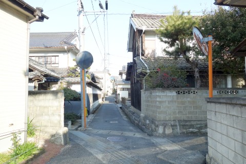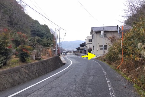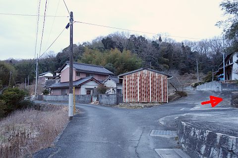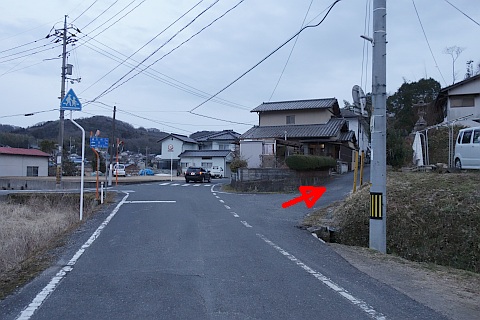 牛供養碑兼道しるべの前から北西へ55m上り、民家の手前で右折。