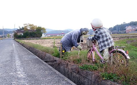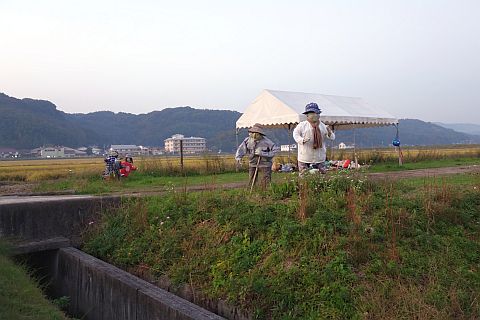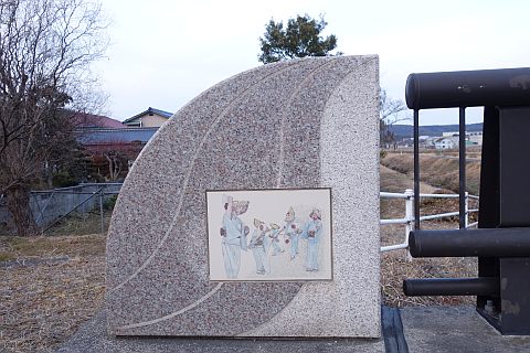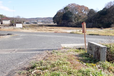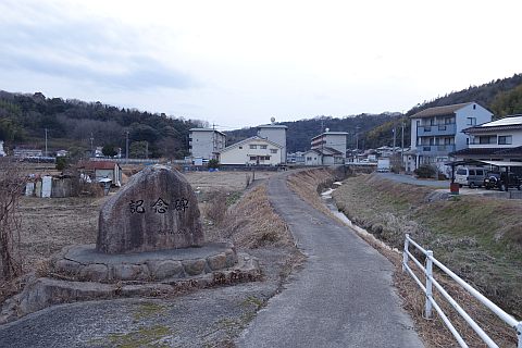 記念碑の前に戻り、稲木川の土手道を西へ118m進む。