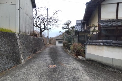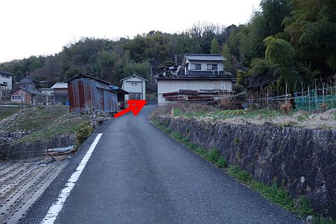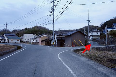 井原市道日芳橋塚原線(東城往来=旧県道)を北北東へ480m、北へ260m下る