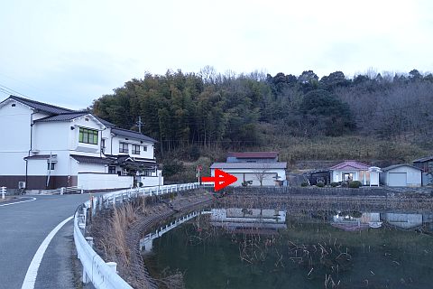 井原市木之子町 道-579、道-561、道-85、道-81、道-65を北へ410m上る。