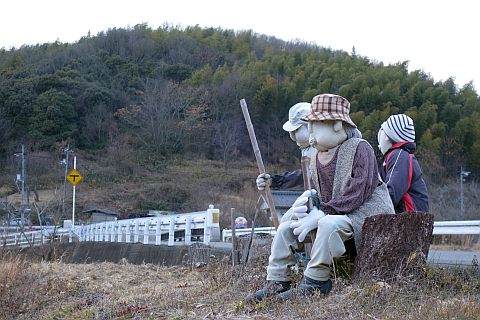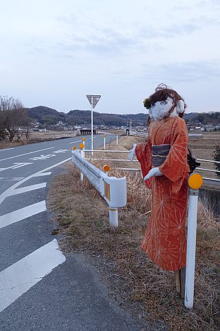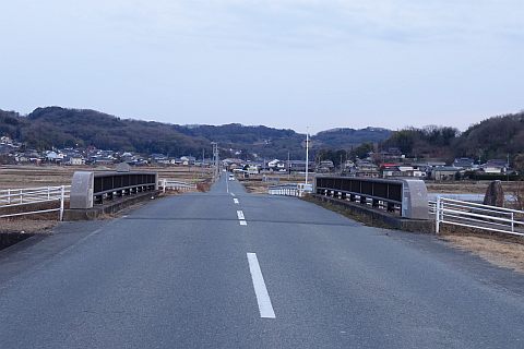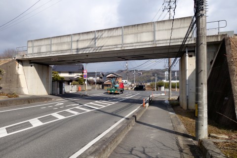 迂回のため、車道を南西へ205m下り、丁字路を右折して井原市道日芳橋塚原線を北東へ105m下る