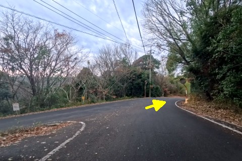 https://maps.app.goo.gl/DVU1XUAEapqFJ277A車道を東北東へ105m下り、ヘアピンカーブを左折して西へ70m下る