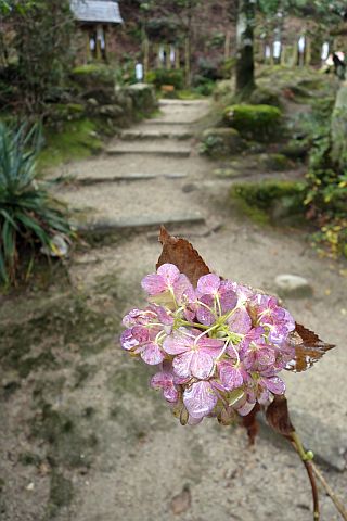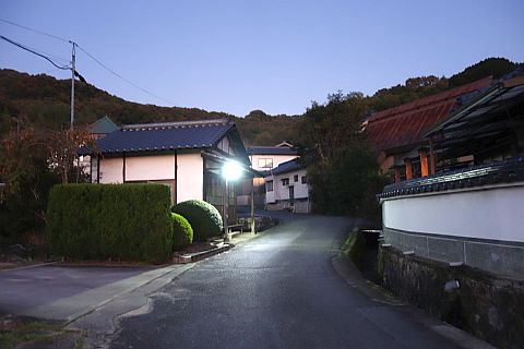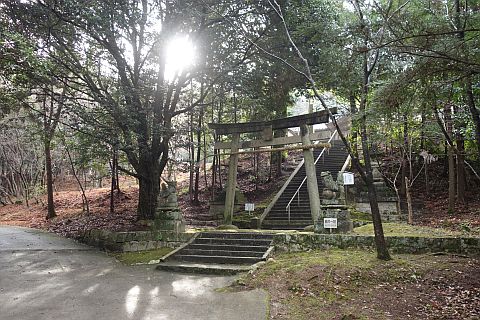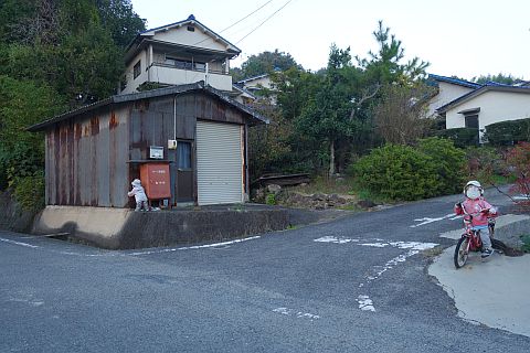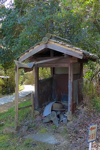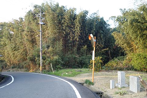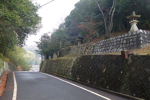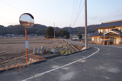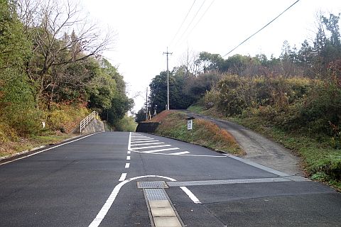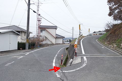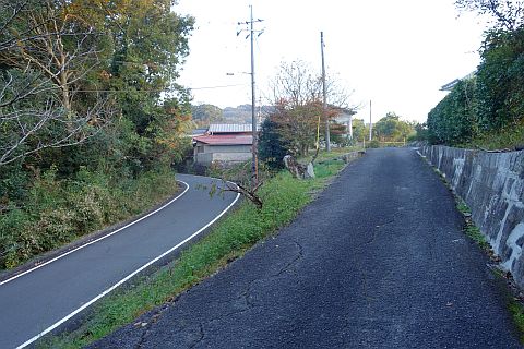 石段を下って車道へ戻り、東へ170m下ってつきあたりの丁字路を左折。
